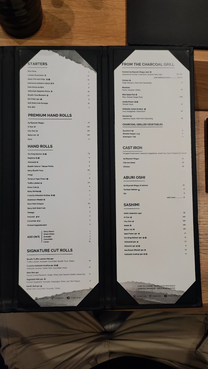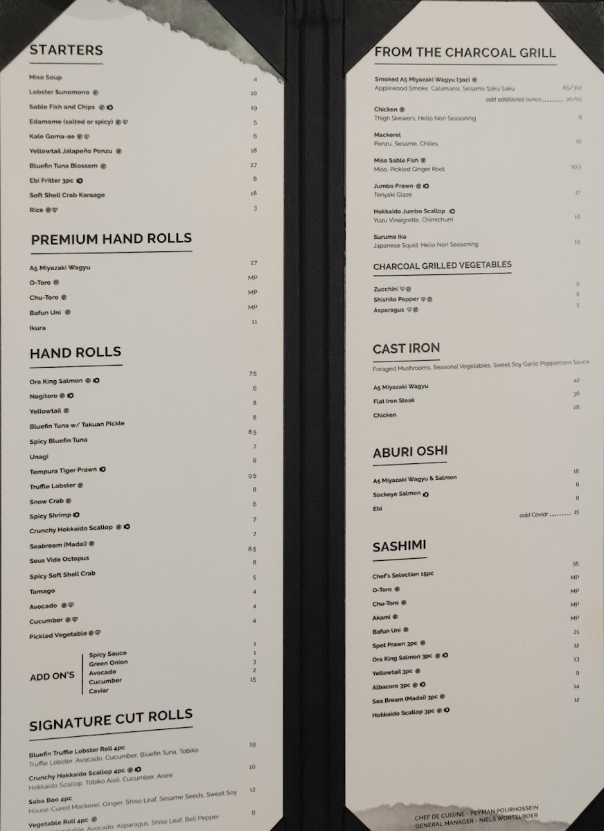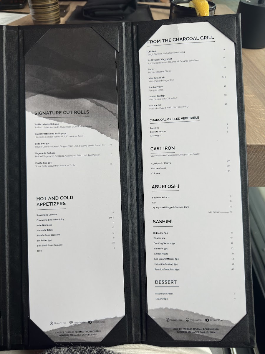 The menu shines with its signature cut rolls, including the Bluefin Truffle Lobster Roll and the delightful Crunchy Hokkaido Scallop. For those seeking plant-based options, the Garden Roll stands out, bursting with fresh veggies. The Aburi Oshi series, featuring chef-recommended salmon and ebi options, elevates the traditional sushi experience with its delicate seasoning.